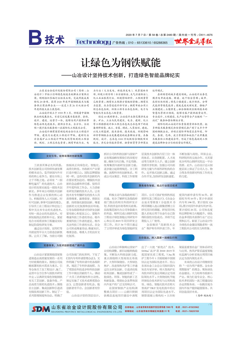 讓綠色為鋼鐵賦能——山冶設(shè)計堅持技術(shù)創(chuàng)新,打造綠色智能品牌紀(jì)實